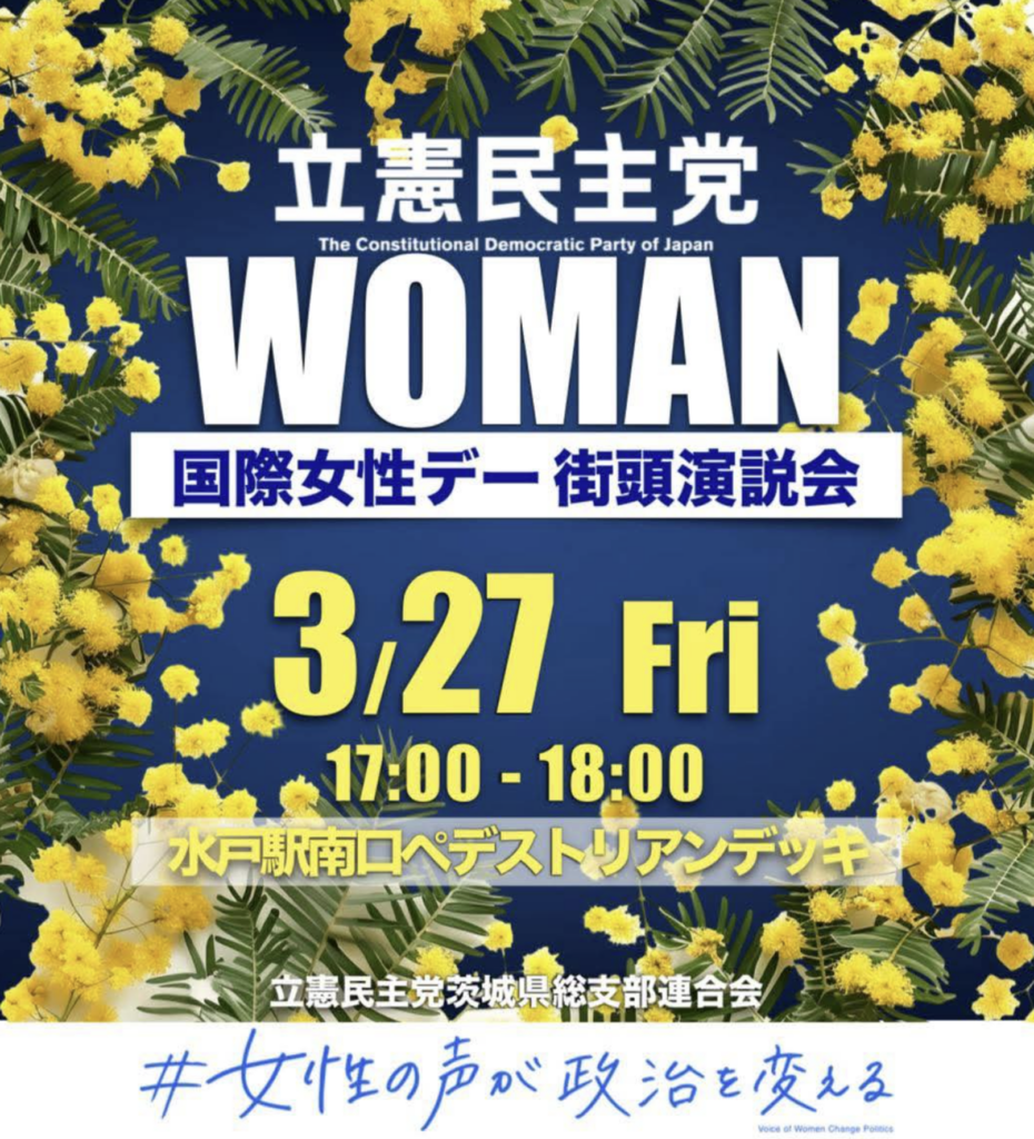 茨城県連は3月27日、国際女性デー街頭演説会を開催しました。